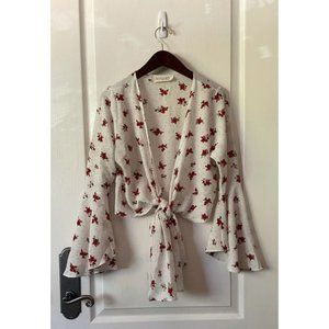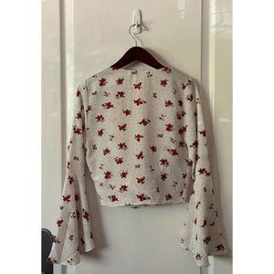 AUDREY 3+1 White Floral Crop Top w/ Bell Sleeves