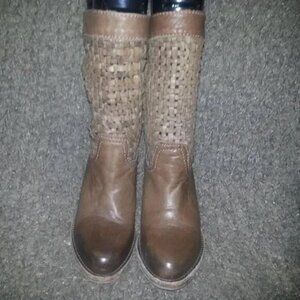 AUSTRALIA LUXE COLLECTIVE-WYNN-Cognac Braided Leather Boots-Sz 35-Excellent