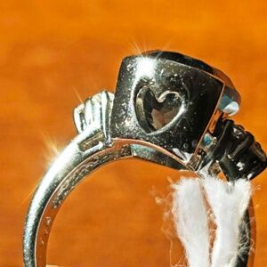 DETAILS: Has a lovely open heart cutout in the silver at the round part of the blue stone.