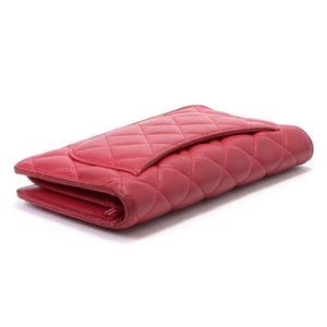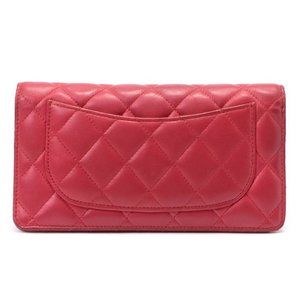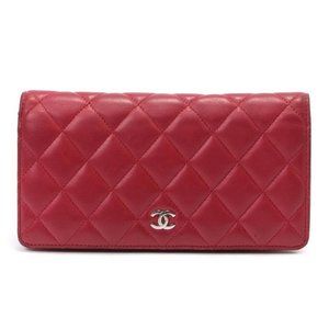 AUTH - Chanel Quilted Lambskin Leather Bi-Fold Long Wallet - Used