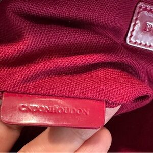 Material: Raspberry check coated canvas and patent leather