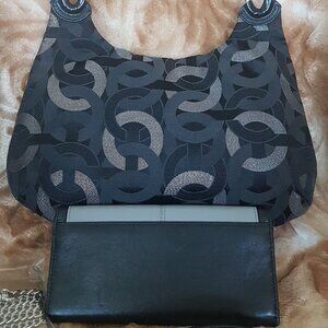 Here's another fabulous Coach multi-piece set that will provide you with options for day and evening wear. It's the Kristin Chainlink Lurex Hippie, boutique (not outlet) style 18790, in black with grey and silver lurex accents, trimmed in black leather and accented by silver tone hardware. With it, the coordinating Kristin Spectator Leather Slim Wallet, style 49007, in the black and grey color combo, also accented by silver tone hardware. And finally, a wonderful add-on - the Coach 46" Chain Strap, style 31126, also in silver. The purse comes with its original adjustable leather crossbody strap and oversize leather hang tag. The purse and wallet are in excellent, near mint condition inside, chain strap is NWT. Set retailed for $488 US.