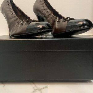 AUTHENTIC Chanel Shoe Brown Black Toe Heel Round Toe Ballet Style Heel Size 9