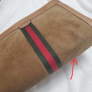 AUTHENTIC GUCCI Ophidia Velcro Mix Suede & Vintage Leather Clutch