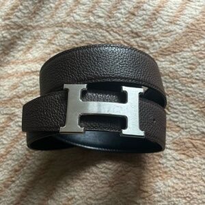 AUTHENTIC Hermès 32mm H Leather Belt - Silver Buckle