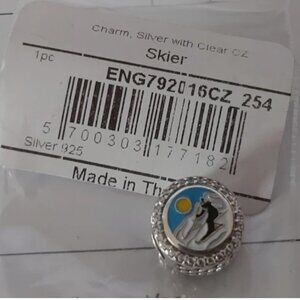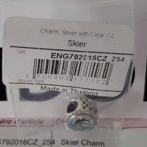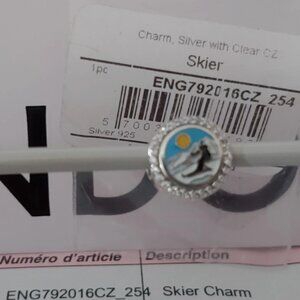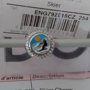 AUTHENTIC PANDORA Sterling Silver Skier Button Charm with Cz's ENG792016CZ_254