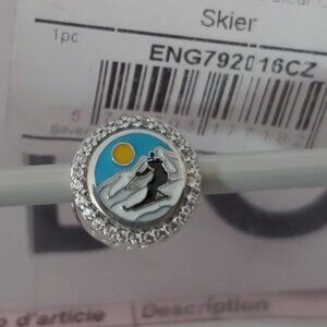 Brand New AUTHENTIC PANDORA Sterling Silver Skier Button Charm with Cz's ENG792016CZ_254