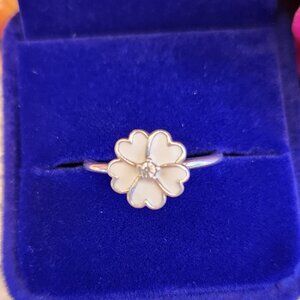 Authentic Pandora White Primrose Sterling Silver Ring with White Enamel and Cubic Zirconia ~ Retired