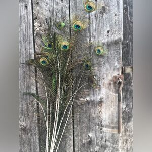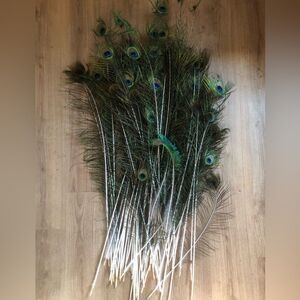 All real, untreated, uncleaned peacock feathers. All the feather are from my handsome Peacock Leo (pictured!)
