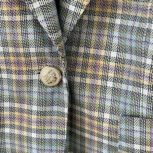 AUTRES FILLES blue/yellow Plaid unstructured gold hardware Blazer Jacket Size M