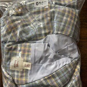 AUTRES FILLES blue/yellow Plaid unstructured gold hardware Blazer Jacket Size M