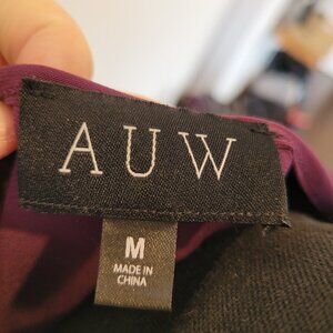 Lightweight material on this plum coloured, short sleeved top with gold metallic detail at neck.