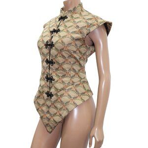 AVANT GARDE Oriental Brocade Vest Top Cap Sleeve S-M