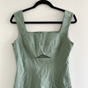 AVEC LES FILLES Linen Square Neck Cutout Dress