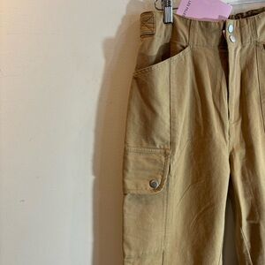 AVEC LES FILLES Sz S Tan Cargo Style Khaki 100% Cotton Anthropologie Pants NEW