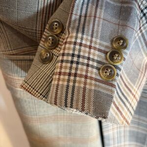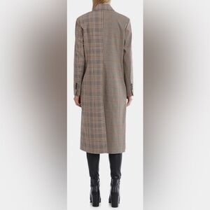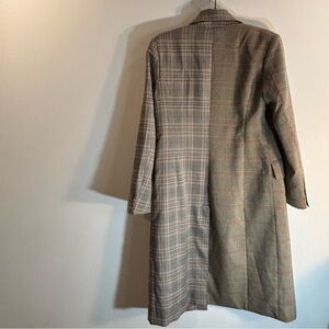 AVEC LES FILLES Sz XS Trench coat Mixed Plaid Patternn Double Breasted Lined Slit at Back. Pockets. Unique statement piecee that is slightlyly oversizeded. Peak lapels. Elegant yet playful.