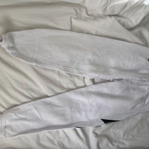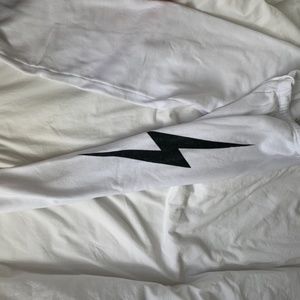 White with a Black lightning bolt down the leg. Size X-SMALL. Barely Worn.