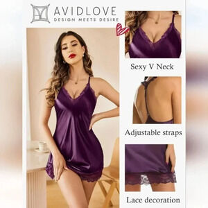 AVIDLOVE | Women's Purple Satin Lace V-Neck Chemise Nightgown