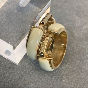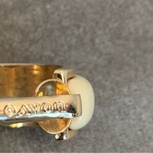 AVON Cream lacquer gold tone trim hoop clip on earrings