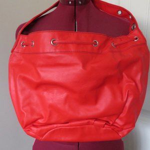 AVON RED Drawstring Hand Shoulder BAG Lined Magnetic Closure (K105)