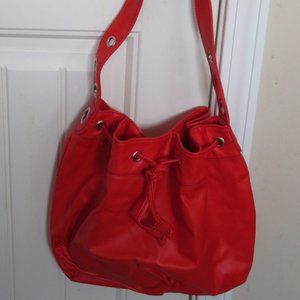 Avon red drawstring hand or shoulder bag, with magnetic closure,