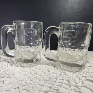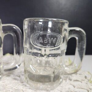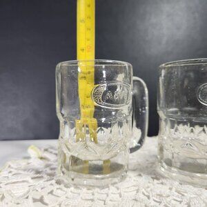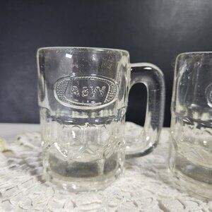 A&W Mini Clear Glass Mug Set of 2 cups Vintage 60s Embossed Logo 3.25"
