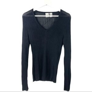 AX Armani Exchange Jet Black Rayon Black Ribbed V Neck Sweater Size L