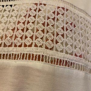 Dot trim on neck and hem; 3.75" wide dot trim panel across chest