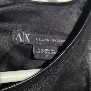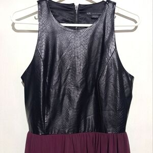 Sleeveless maxi dress with a black snakeskin patterened faux leather bodice and purple flowy skirt from A/X Armani Exchange