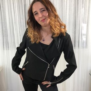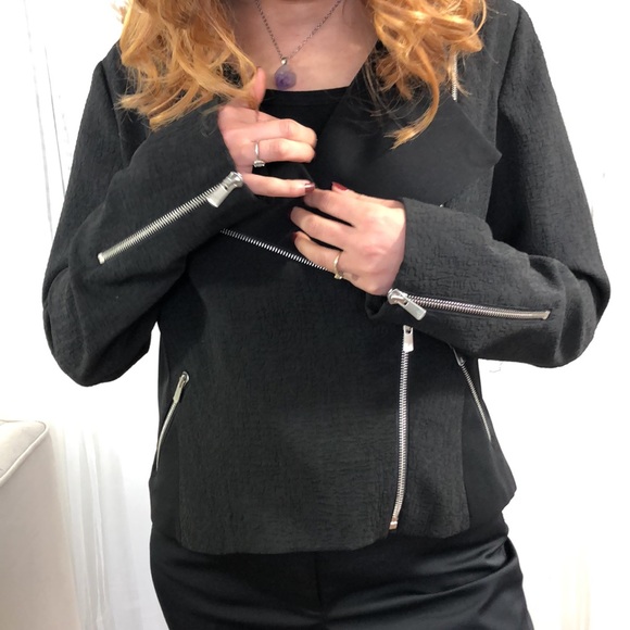 EUC 💕 Moto style texture black jacket with multiple silver colour zippers! Fully lined