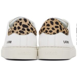 NEW WITH TAGS*** White AXEL ARIGATO Designer sneakers with animal print accents. Comes with two sets of laces: one with neon green tips and one plain white. Fully leather shoes very soft and TTS.