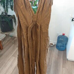 Please see photos for more accurate colour depiction. I ordered this dress and due to the company using natural dyes, the colour varies from their display photo. It has more of a brown flax undertone, and doesn't suit my skin tone. Comes with original AYA bag, incense and stickers. Stated as NWT though it never had a tag, the bag is the tag.