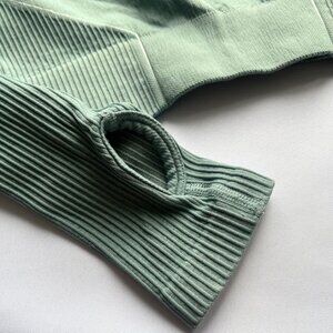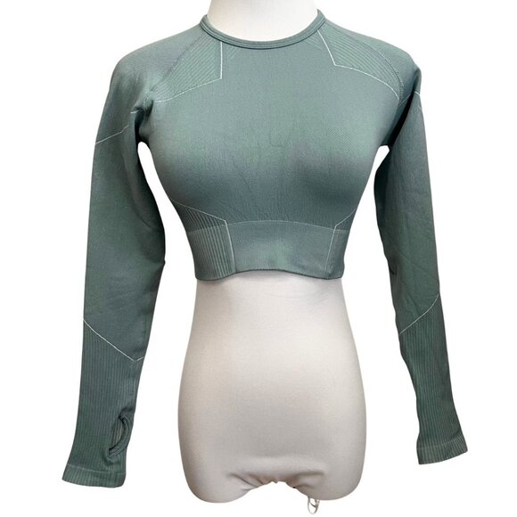 AYBL REFLEX SEAMLESS LONG SLEEVE CROP ATHLETIC TOP IN DUSTY MINT GREEN - S