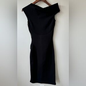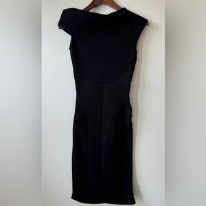 AZ Factory Mybody One Shoulder Asymmetrical Ribbed Bodycon Midi Dress Black XS