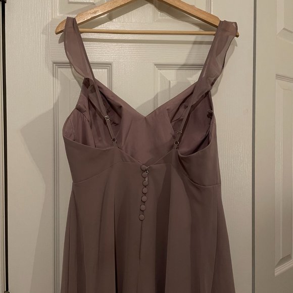 Purchased in 2022 - This dress will need to be dry-cleaned (Gin and 7up was spilled on me - both clear, should not stain). This dress has thin frilly straps, a zippered closure and buttons on the back. The bust has boning and was taken in slightly in the chest, and hemmed in the front only around 2" leaving a slight train (I am 5'4" and wore 3" heels).