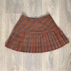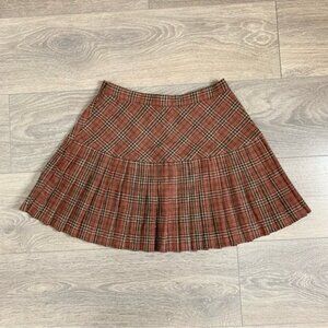 Aakaa Pleated Plaid Mini Skirt High Rise waist Brown Size Small Preppy Academia