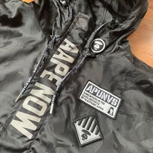 Crafted with precision and attention to detail, the AAPE Jacket boasts a striking aesthetic that captures attention. The iconic AAPE branding is prominently displayed, showcasing your affinity for cutting-edge street style. The jacket's design is infused with urban flair, making it a standout piece in any wardrobe.