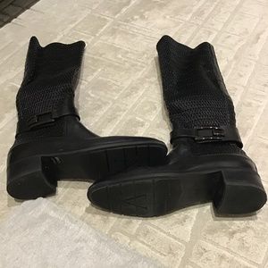 Aquatalia Black Boots Made in Italy Size 6.5 Silver buckle Long zipper Storage bag included