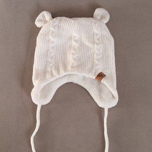 Aardvard White Baby Hat with little ears and matching mittiens, never worn.