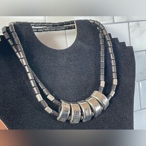 Aarikka Stella Vintage Wood Bead and Silver Toned Metal Bead Necklace
