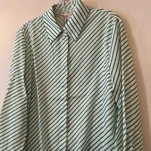 Aaron & Amber Striped Oversized Relaxed Fit Button Up Shirt in Kelly Green