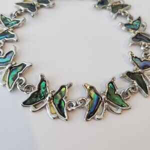 Very cute & pretty bracelet * Iridescent abalone shell butterfly charms * Silver tone chain link bracelet * clasp closure