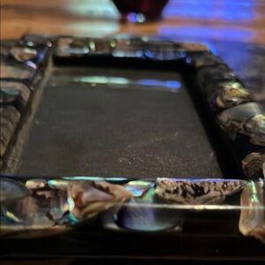 Enhance your home decor with this stunning abalone shell photo frame. The iridescent green and brown hues add a touch of elegance to any room, the frame is not glass but plastic cover .