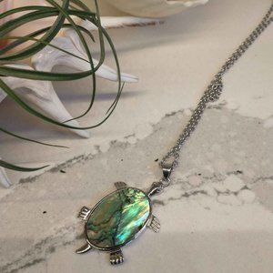 Brand new item comes with stainless steel 30" chain featuring adorable abalone turtle pendant - Silver Color Plated - 28.5x47x3mm
