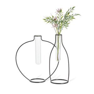 Crafted out of metal, the frame is a stylish complement to any type of contemporary decor, while the narrow vase allows display of fresh flowers.