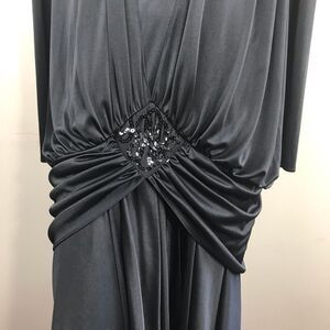Abby Kent Vintage Black Glam Draped Sequin High-Low Midi Dress