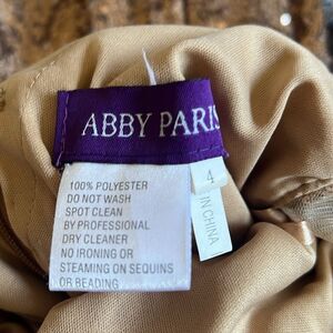 Abby Paris by Lucci Lu Long Sexy Bronze Sequin / rhinestone Deep V back Gown Dress Sz 4