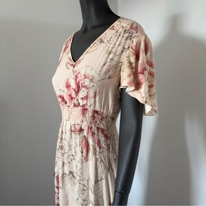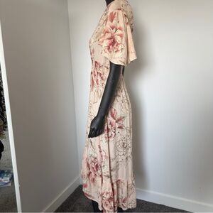 Abel The Label Blush Floral Ruffle Midi Dress Size Small