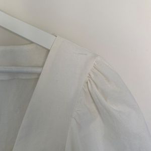 White button-up blouse with puff sleeves in beautiful slightly textured organic cotton fabric. Made in Vancouver by ethical local clothing designer Abel Wear. RRP $175. Currently sold out.