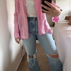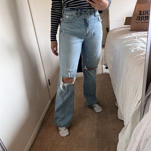 Abercrombie The 90s High Rise Relaxed Jeans- light-medium wash with rips in the knees. Size 29